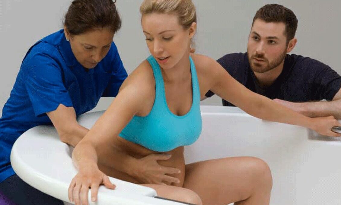 La baignoire CENTRYS offre une immersion idéale pour soulager les douleurs pendant le travail.